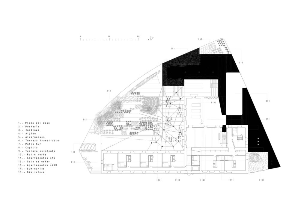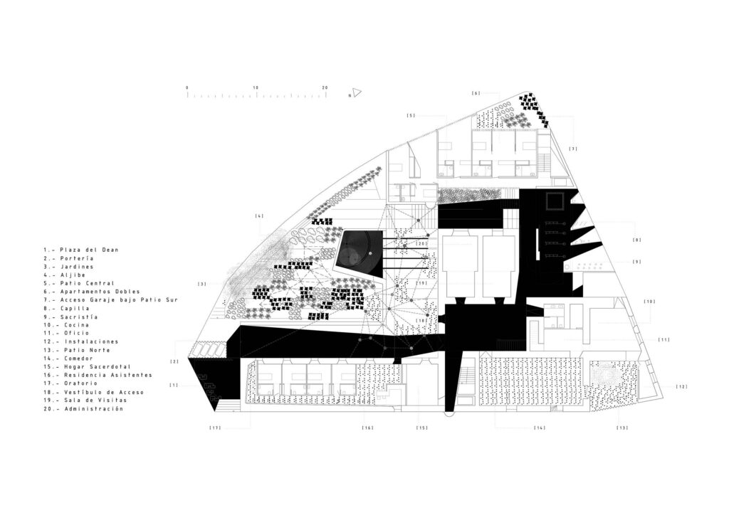 - Invitations to participation: elements that stimulate the response of the inhabitants and encourage associations. The chapel is a transformable space, open to reconfiguration of the users, while the sacristy is not a closed and opaque room, but a sort of ‘diluted’ series of self service cupboards.